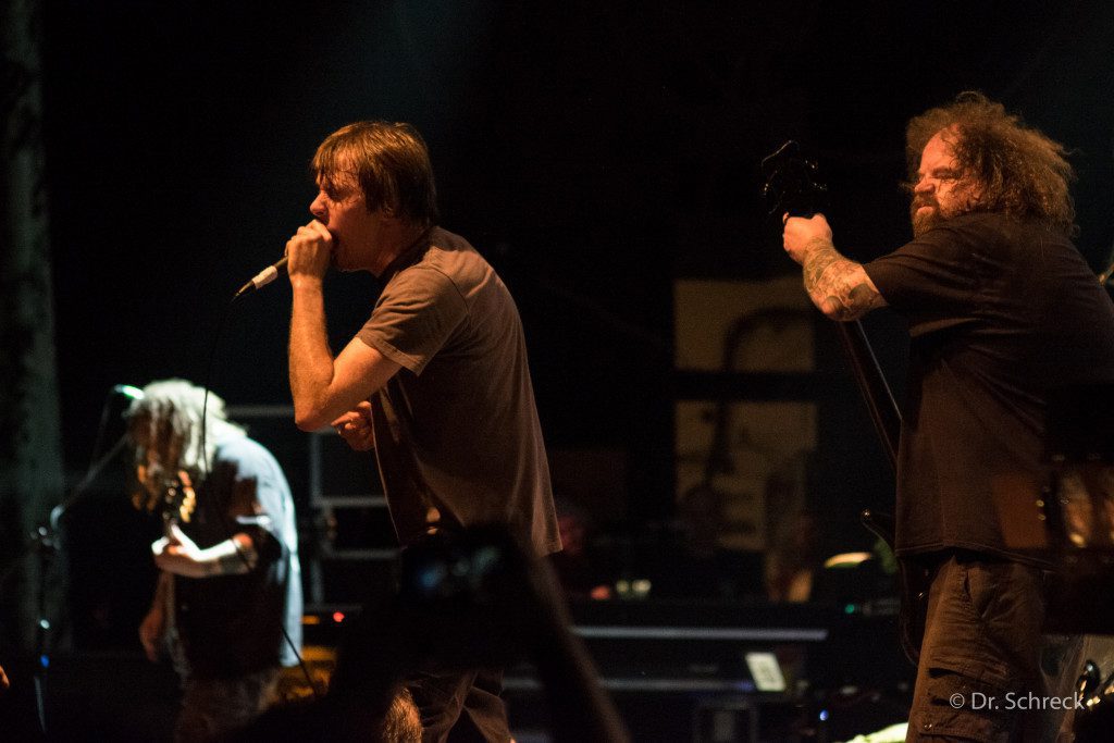 Teniendo solo 40 minutos para repasar una trayectoria tan extensa, decidieron seguir el camino mas furibundo eligiendo temas bastante contundentes que mantuvieron el tono de la gente. Y la dinámica del grupo con el carisma del cantante “Snake” es fantástica. Mención aparte para el batería “Away” que con un pequeño set empuja todo el concierto.
