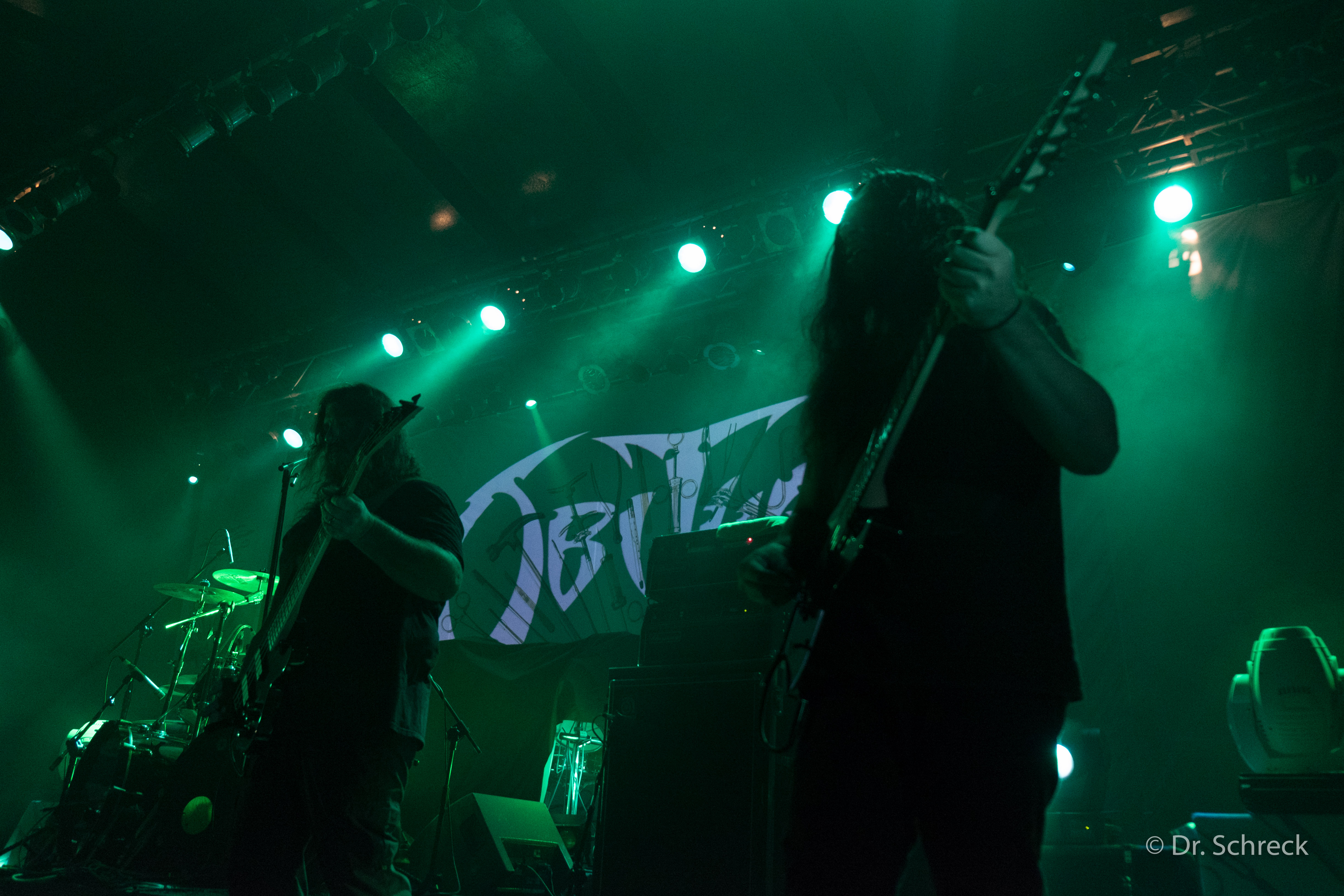 They started with the intro of the new album and from this they chained three themes (Unit For Human Consumption from Surgical Steel, Buried Dreams from Heartwork and Incarnated Solvent Abuse from Necroticism) of such level that showed they were not taking prisoners that night.