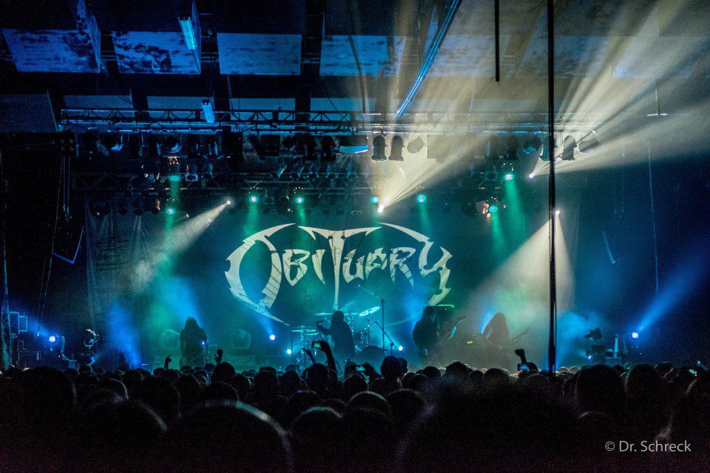 Llegaba a continuación el momento de Obituary que comenzaron con Redneck Stomp, una canción instrumental de su album Frozen In Time. Esto fue un elemento curioso, puesto que durante el tiempo que dispusieron, me dio la sensación que al menos interpretaron 3 canciones instrumentales lo que me llama la atención. Tal vez Donald Tardy necesita dar descanso a su voz entre temas, pero lo que estuvo claro es que instrumentalmente no necesitan descanso.