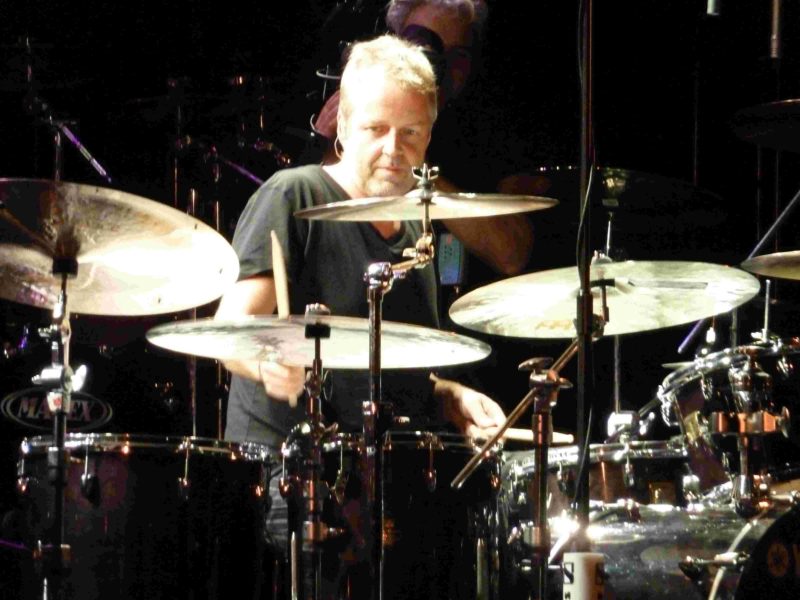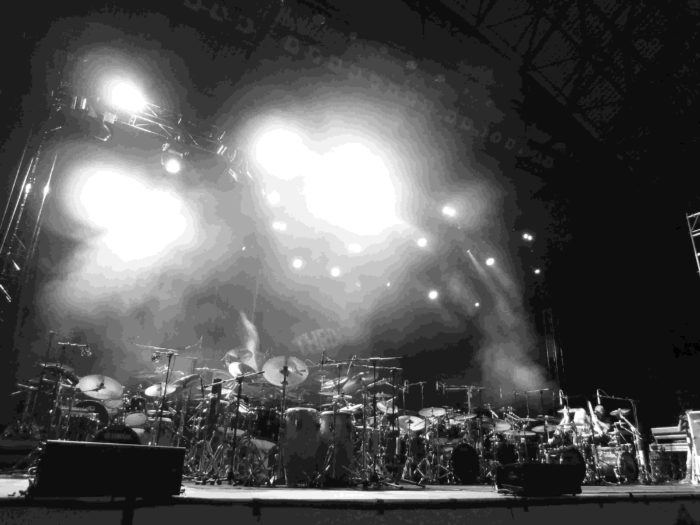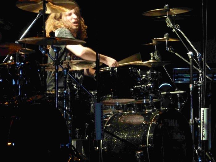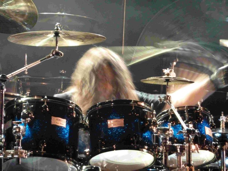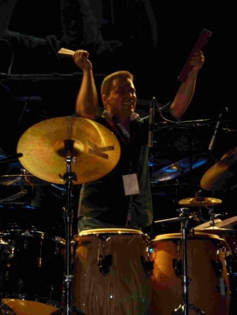 Desde las 18.00h hubo en el hall del Palacio de los Deportes una exposición, sin venta al público, de baterías e instrumentos de percusión, fundamentalmente a cargo de la distribuidora de Mainl en España y de diversas tiendas, como Musical Ochagavía. Y a las 21.00h dio comienzo la exhibición. En este espectáculo cada batería dispone de 15 ó 20 minutos en los que nos demuestran de lo que son capaces, tocando sobre canciones o ejecutando solos de batería. La gala fue presentada, como no, por el inimitable Dom Famularo, quien estuvo bien acompañado por Pilar Rubio. Sobre el escenario se dispusieron más de 10 kits de batería, y todos los que tocaron en las master class de la mañana repitieron por la noche, con un show muy parecido a nivel musical, pero menos didáctico. Al fin y al cabo, si las master class están orientadas a bateristas o músicos en general, el show de la noche está pensado para el disfrute de cualquier persona que sea simplemente aficionada a la música. El espectáculo dio comienzo con Milos Meier. Este batería checo, que no tocó por la mañana, nos sorprendió con su gran técnica, con fills constantes, y un efectivo juego de pregunta – respuesta con la caja y el doble bombo. A partir de aquí, todo se desarrolló, como he dicho, de manera muy similar a la mañana. Lástima que tuve que ausentarme del show de nuevo durante la exhibición de Chris Coleman, pero viendo los vídeos de youtube, y habiendo vivido ediciones anteriores de este festival, supongo que me perdí un gran show final en el que todos los baterías sobre el escenario, sobre un ritmo de 4/4, improvisan a turnos, para finalmente regalarnos una gran versión de Santana.