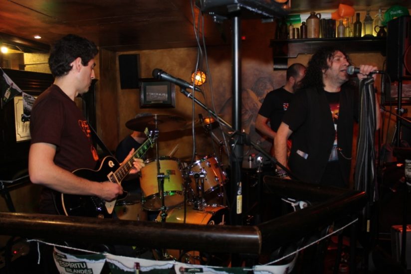 Moonshine whiskey es un grupo formado por 4 amigos que no tienen mayor pretensión que disfrutar tocando temas clásicos de la historia del rock y, sobre todo, hacernos disfrutar a los que asistimos como público a sus bolos. No esperes encontrarte en sus conciertos pirotecnia musical ni alardes excesivos. En cambio, lo que sí que encontrarás es ROCK con mayúsculas, interpretado con mucha calidad (todavía pienso que sería incapaz de distinguir a Fernando de Eric Clapton tocando el Hideaway de Freddie King vía Beano) y una selección de temas que abarcan desde AC/DC, donde Luís clava con su voz el espíritu tanto de Bon Scott como de Brian Johnson, hasta Bad Company, donde la base rítmica formada por Bernar a la batería y Óscar al bajo se encargan de dar ese feelin’ único a temazos de este calibre. Cabe destacar el gran control que ha conseguido Luís con el delay vocal en la parte central de la cover de Whole Lotta Love, donde la verdad es que lo clava!!