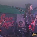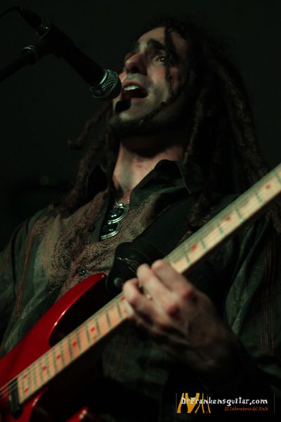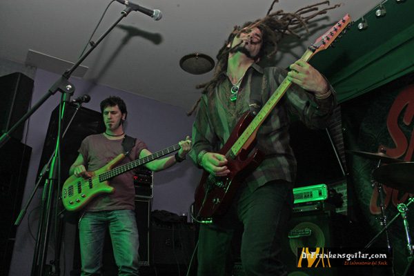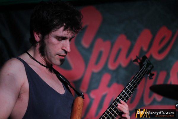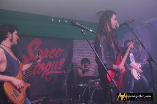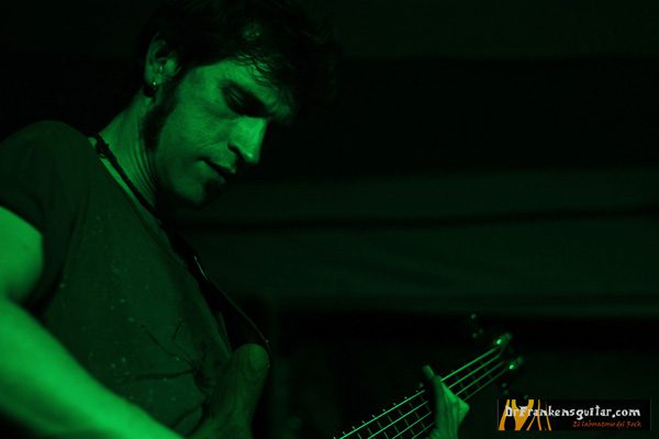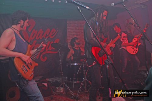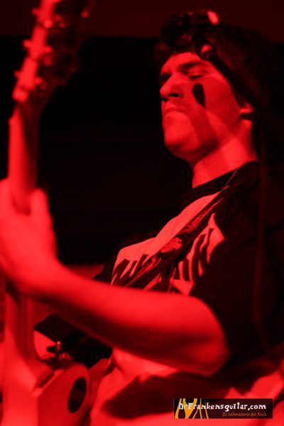 Tras el cambio de instrumentos saltó al escenario Space Octopus descorchando botellas de Champán para acompañar a las raciones de pulpo y los ganchitos… y es que estábamos de celebración cumpleañera. Mientras “rulaban” los vasos de plástico con Champán empezó el repertorio: Gente loca, El Mundo Genial, Hazlo Otra Vez, Frío Sueño, Orgullo Decepción, La Vida es Así, El Caos, Enmudecí. Parón para tomar fuerzas y vuelven con la metalizada versión de Deshacer el Mundo de los Héroes del Silencio, No es lo que Tú sientes y The Call, un lucido tema instrumental del anterior disco de Dann. Otro parón y cierran con Jackie, tema en el que presentan a la banda.